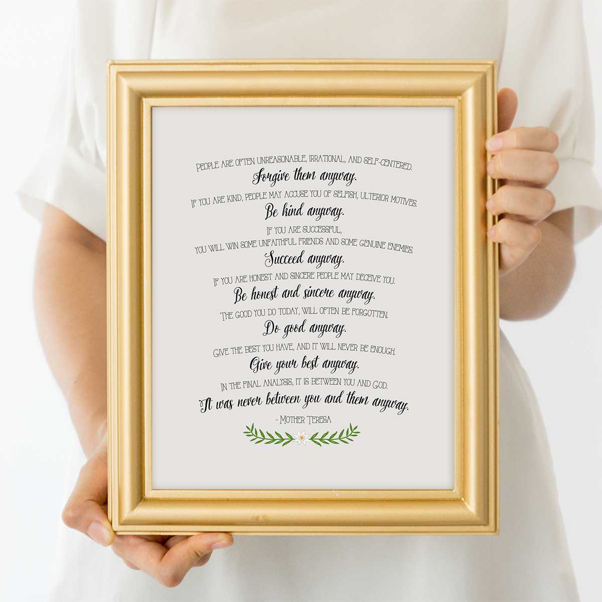 Do It Anyway Mother Teresa Quotes Wall Art Print โ Christian